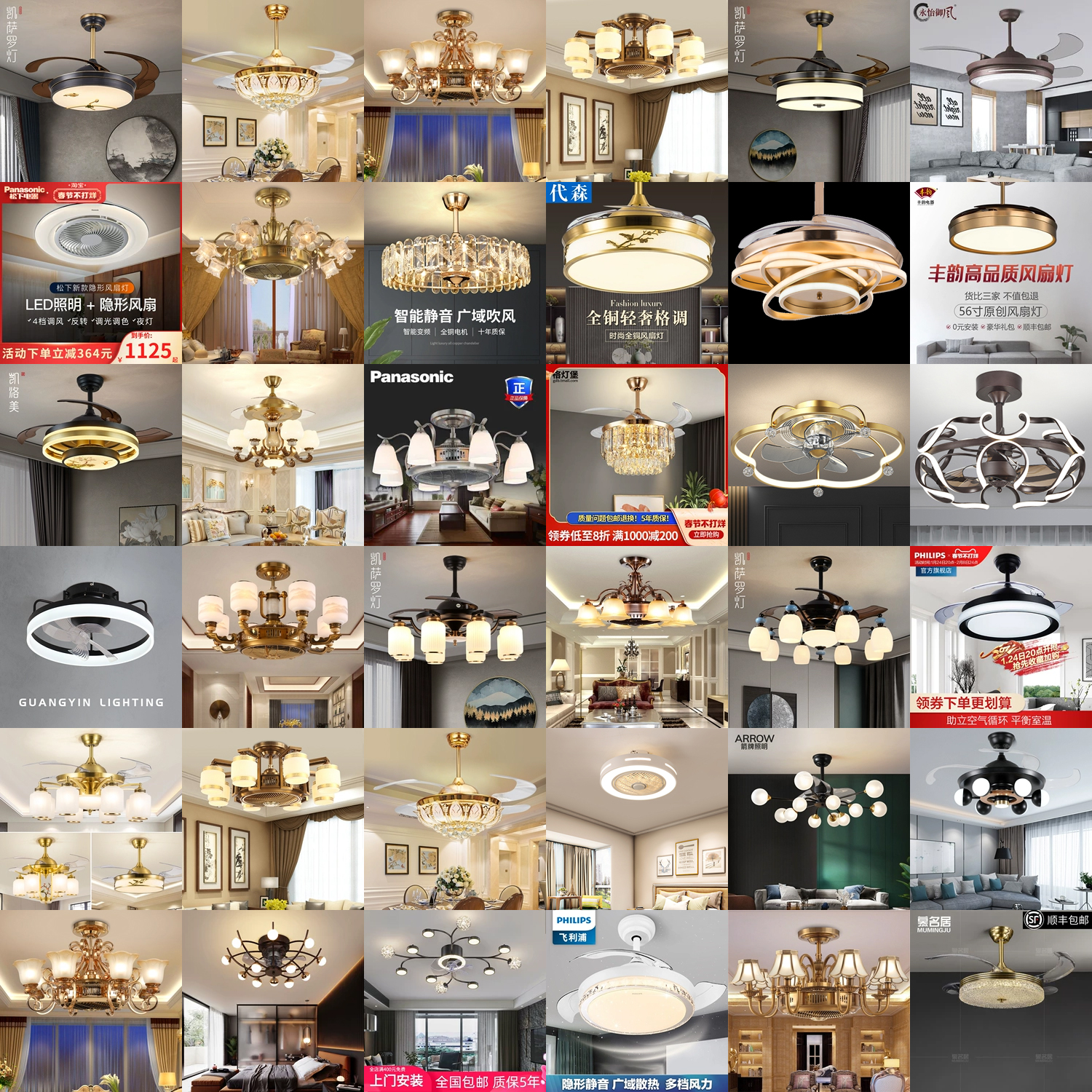 如果不考虑搭配,巴不得全部用风扇灯 ,太实用了 !